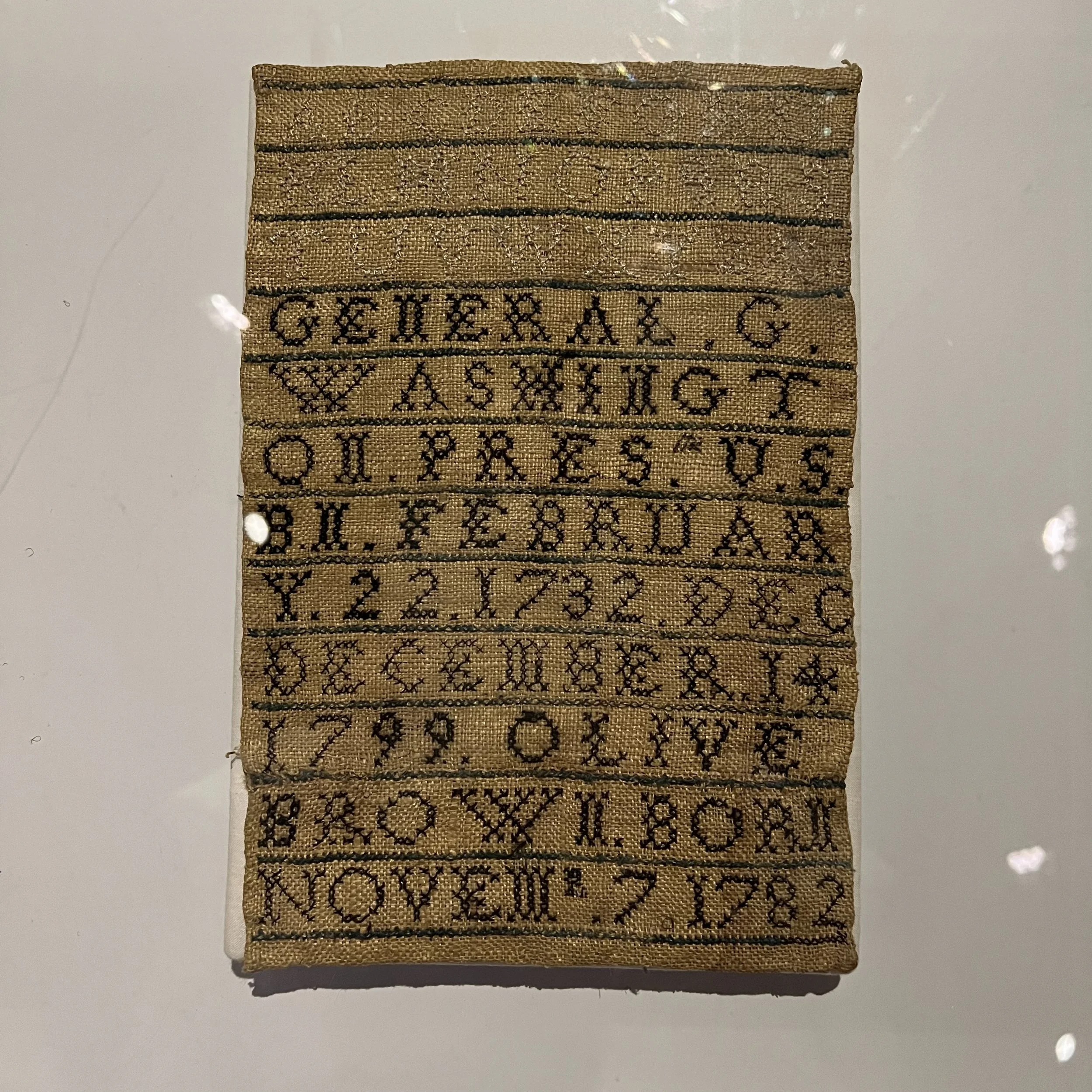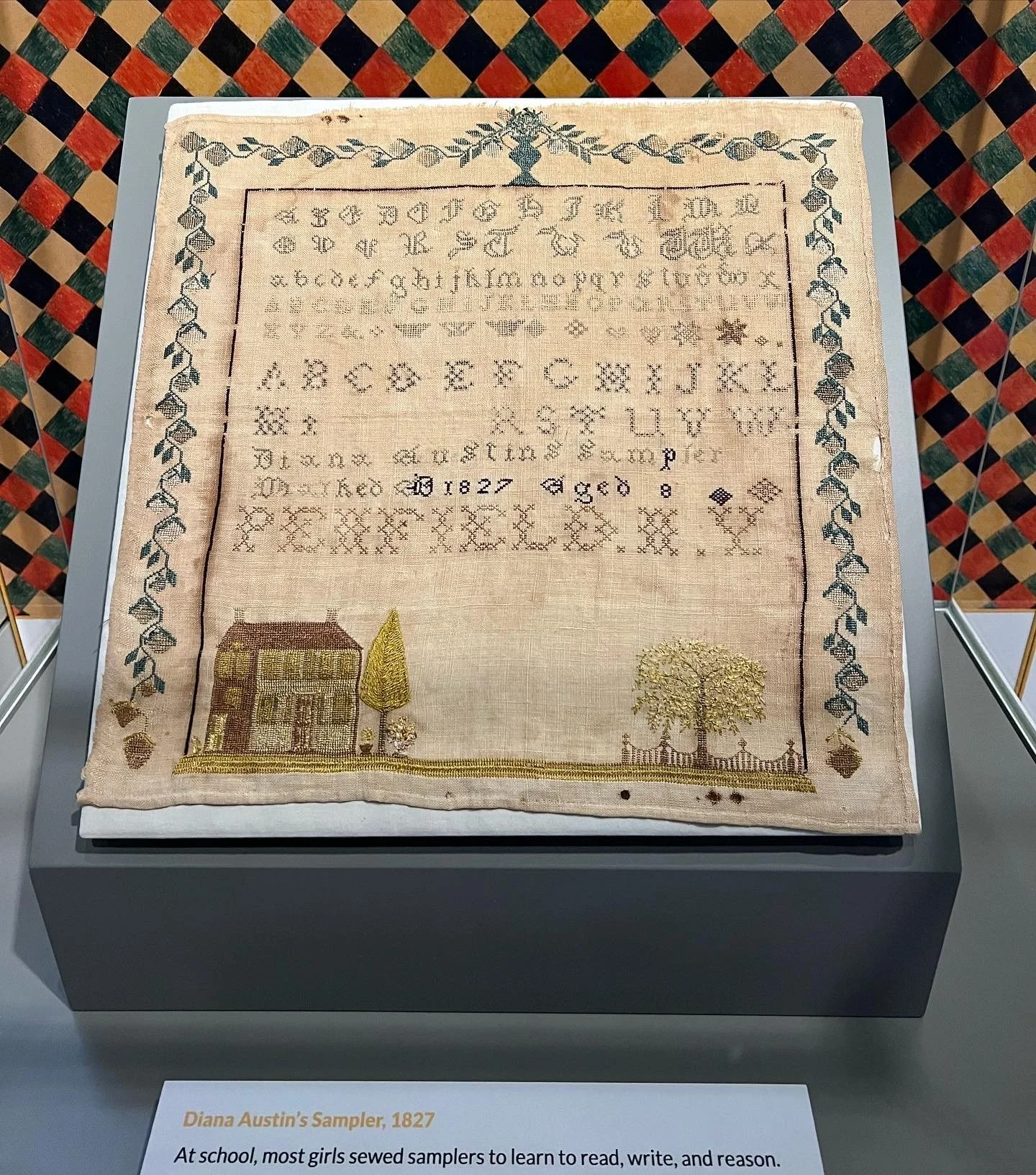 When Anna was in Northern Virginia she went to the Smithsonian in search of historic samplers and found 3 interesting ones in an special exhibit on “Girlhood”.